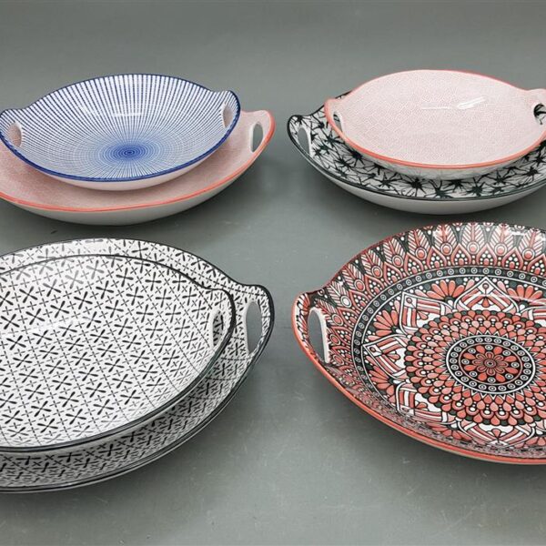 צלחת עגולה עם ידיות דקור 5.6*20*22.5