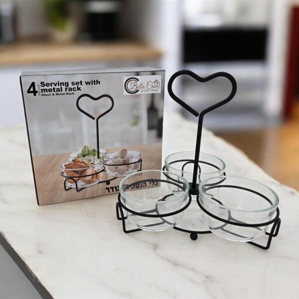קברט 3 קעריות+מעמד מתכת שחור+ידית 20*19*22