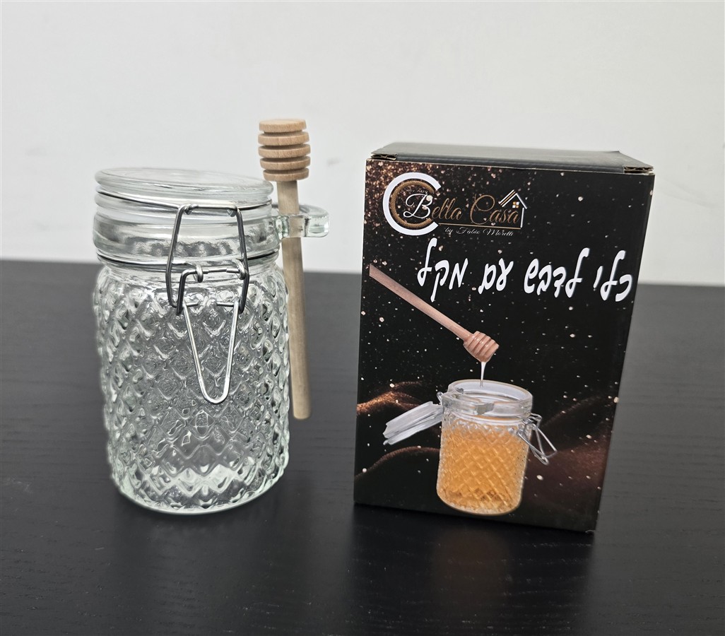 / צנצנת לדבש עם מקל עץ בקופסת מתנה
