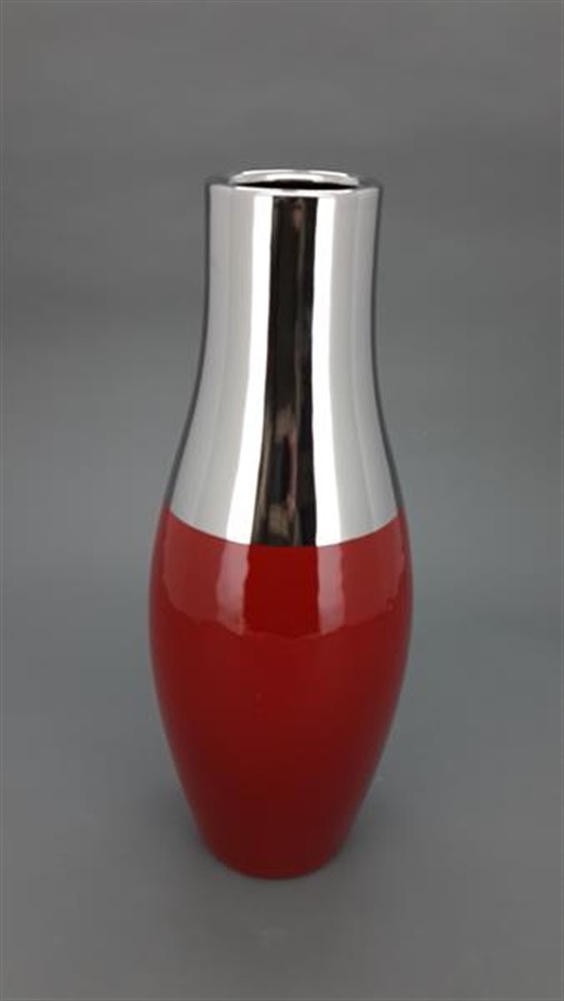 / אגרטל גבוה קרמיקה אדום/כסף 41*16