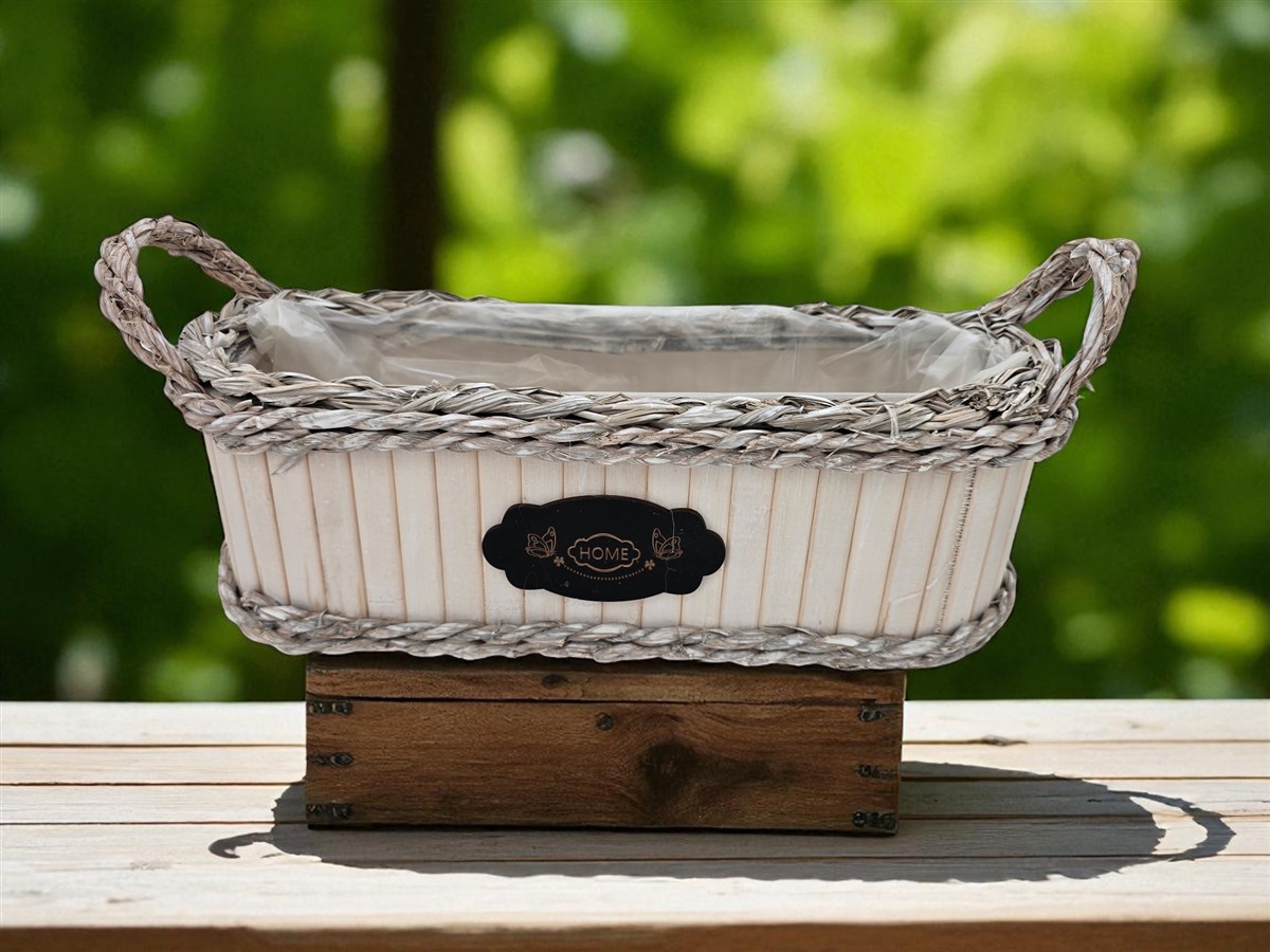 אדנית עץ עם ידיות לבן אובלי 14*17*34