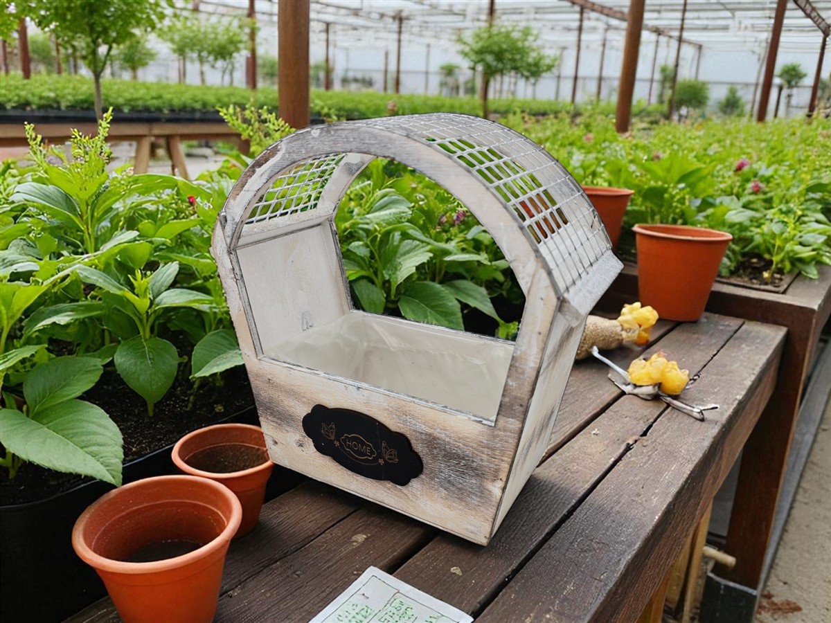 אדנית עץ עם ידיות לבן אובלי 12*14*38