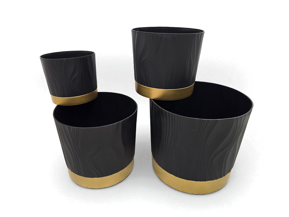 / בית עציץ עם תחתית שחור זהב 31*35 פלסטיק