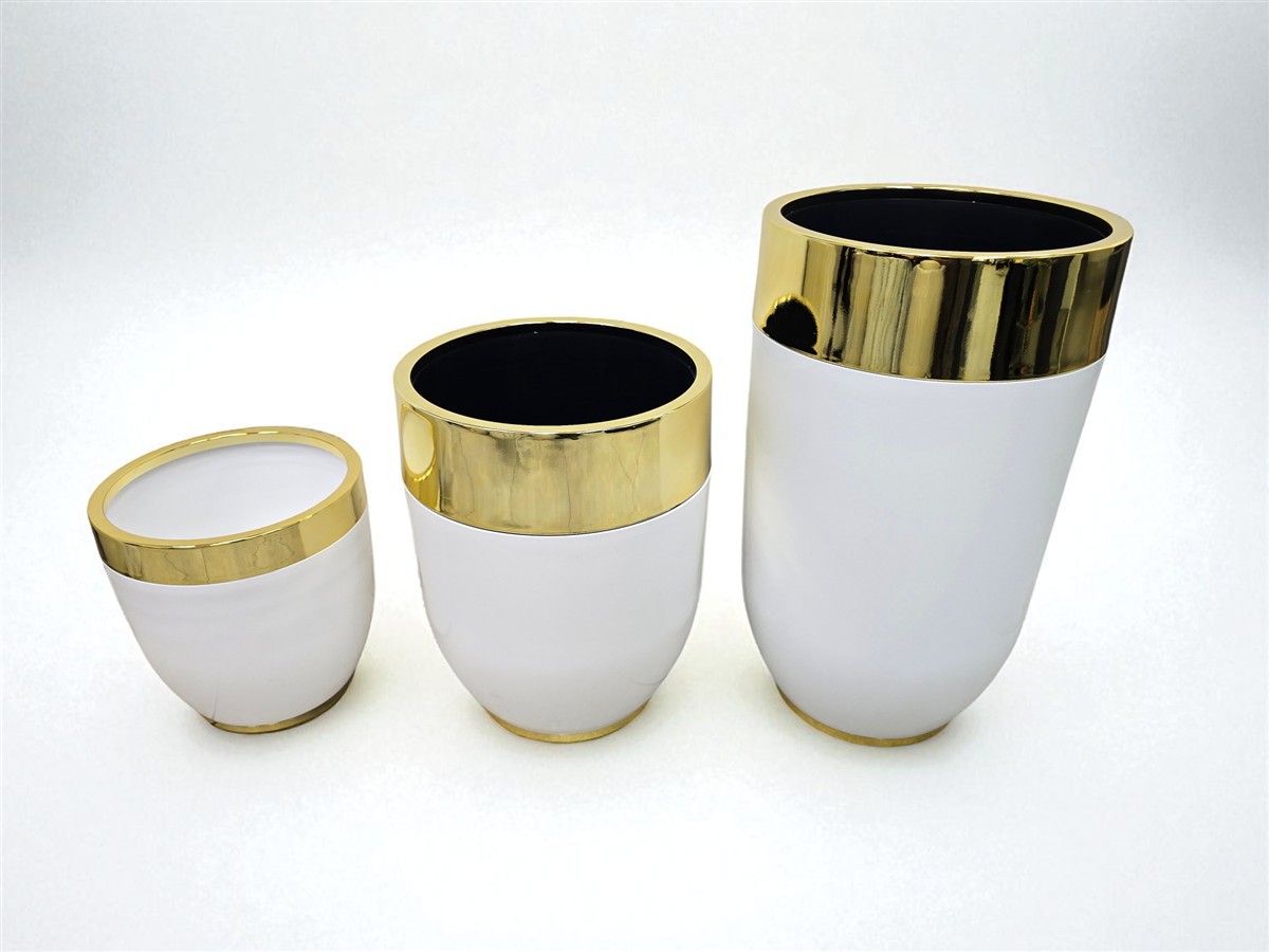 / בית עציץ רצפתי לבן זהב 46*36 פלסטיק
