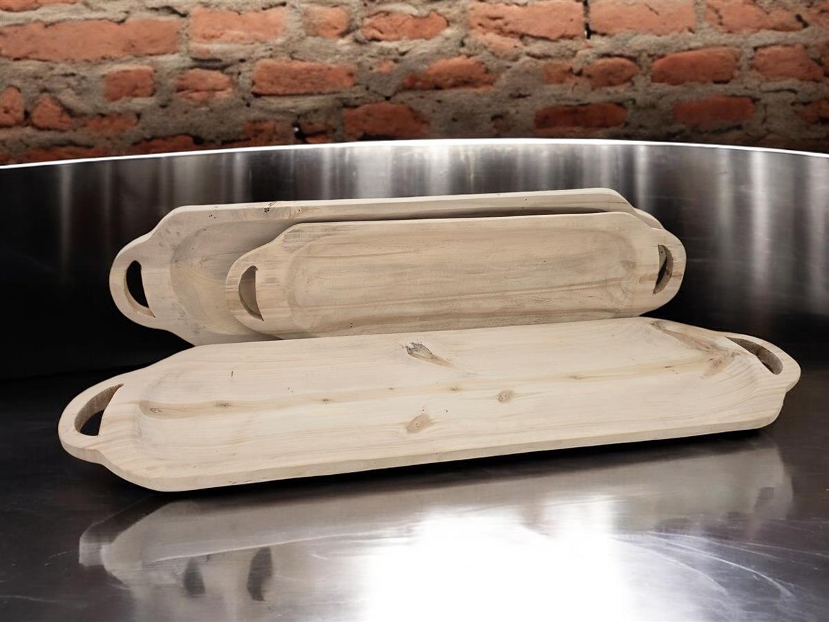 מגש אובלי עם ידיות עץ מגולף 4*24*88