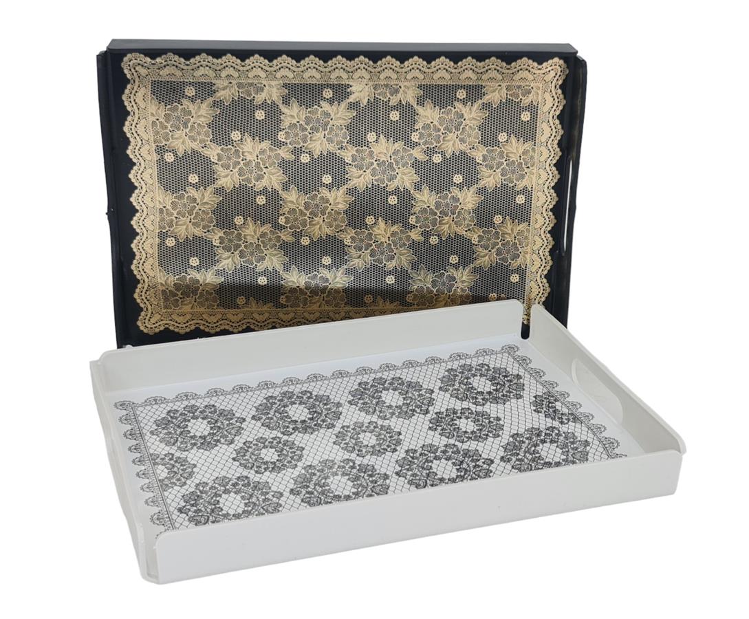 מגש מלבני לבן תחרה 25*35