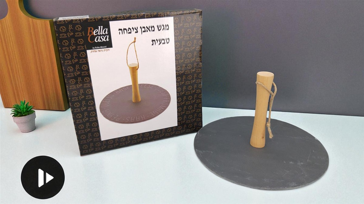 / מגש עגול אבן צפחה עם ידית במבוק