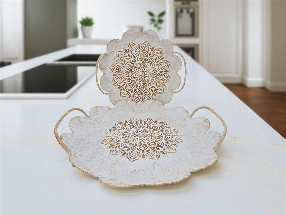 / מגש עגול עם ידיות מתכת לבן/זהב 7.5*40