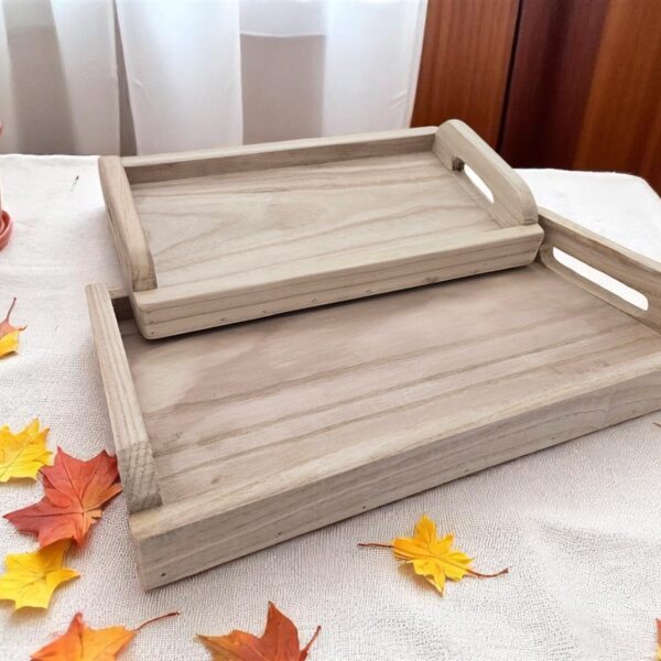 מגש מלבני עם ידיות עץ מגולף 2.5*28*85