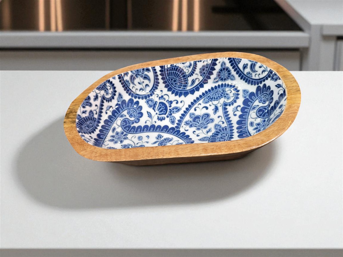 / מגש עץ אמייל כחול 12*20