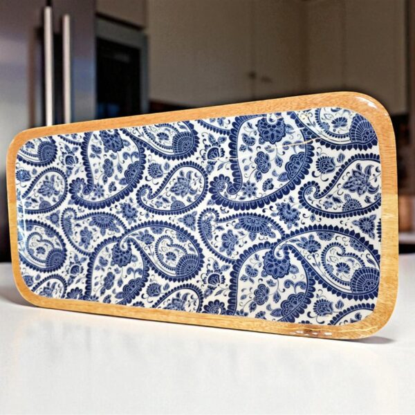 מגש עץ מלבני אמייל כחול 20*40