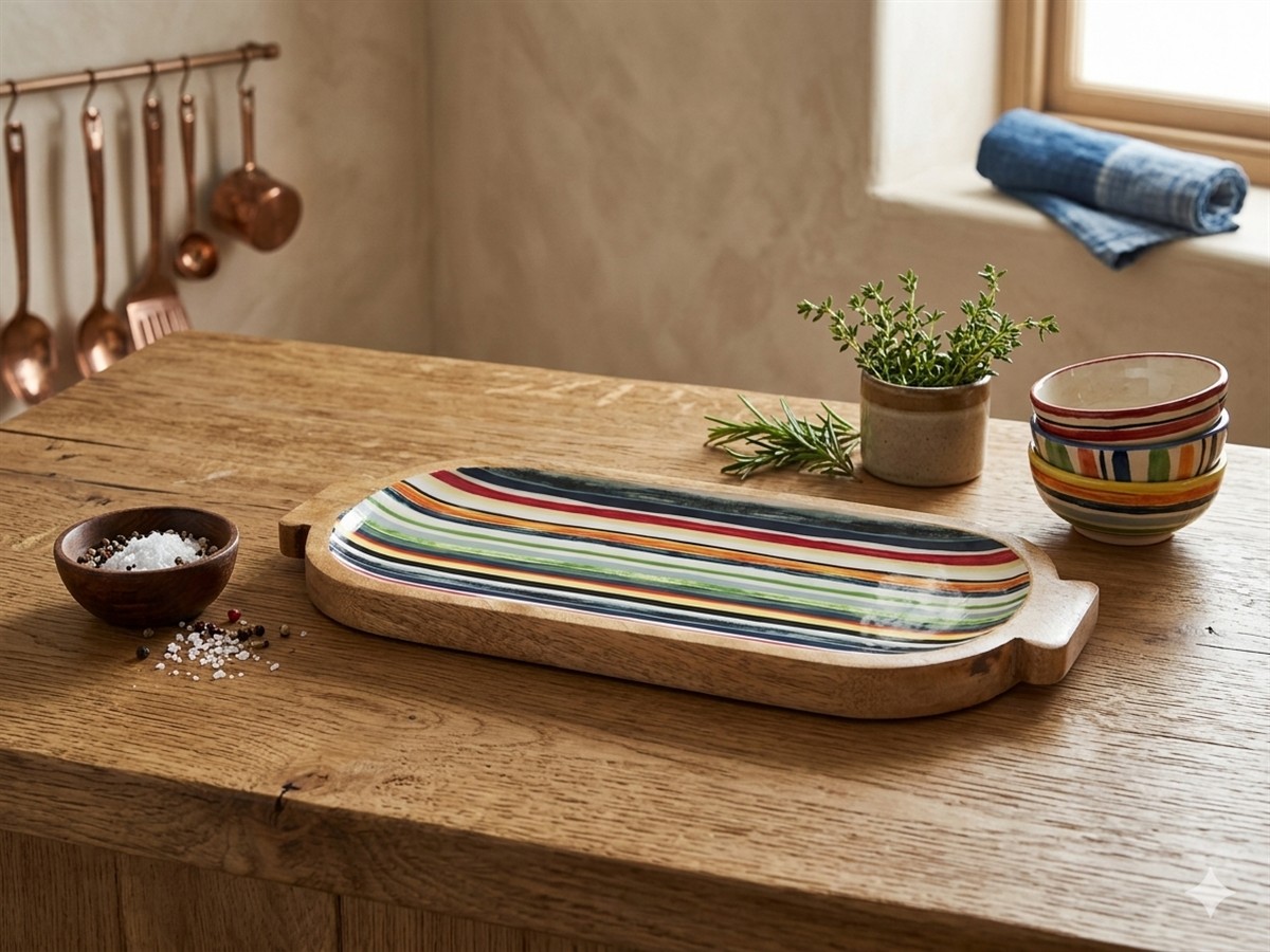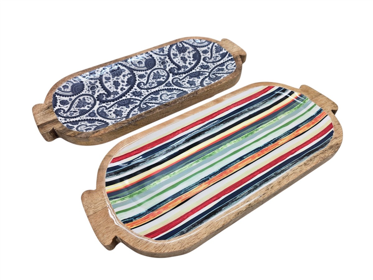 מגש עץ אמייל פסים 17*46