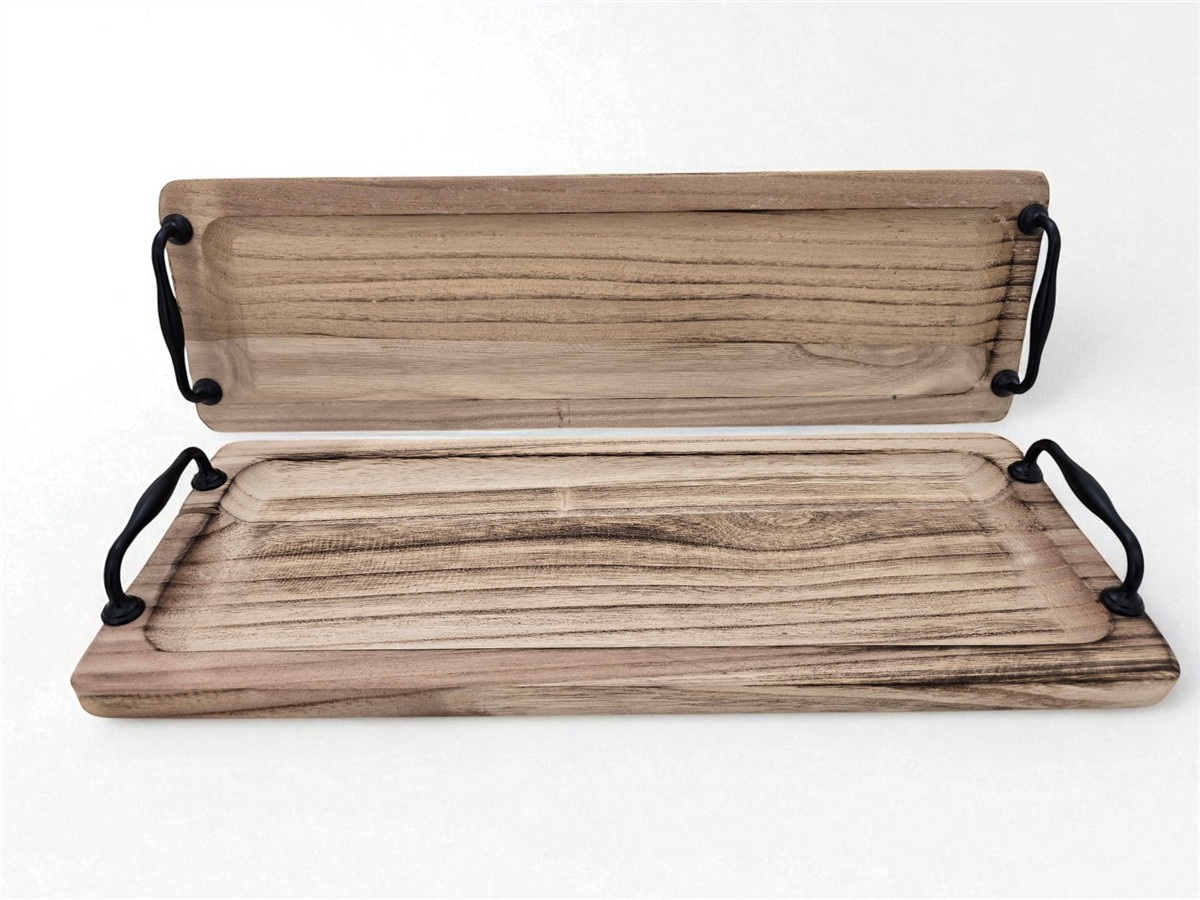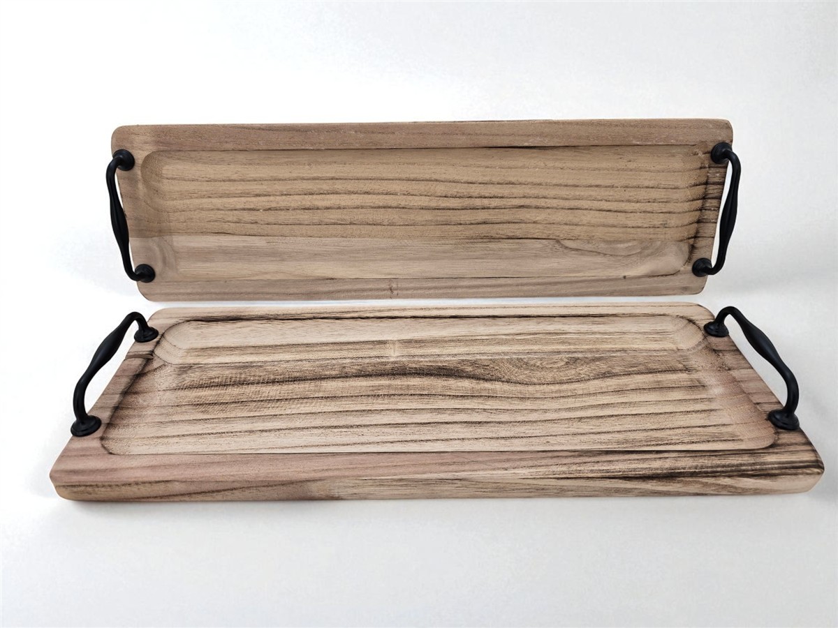 מגש עץ מגולף עם ידיות מתכת 2/5.5*18*45