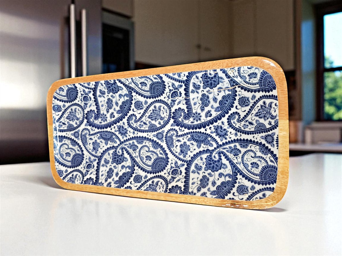 / מגש עץ מלבני אמייל כחול 20*40