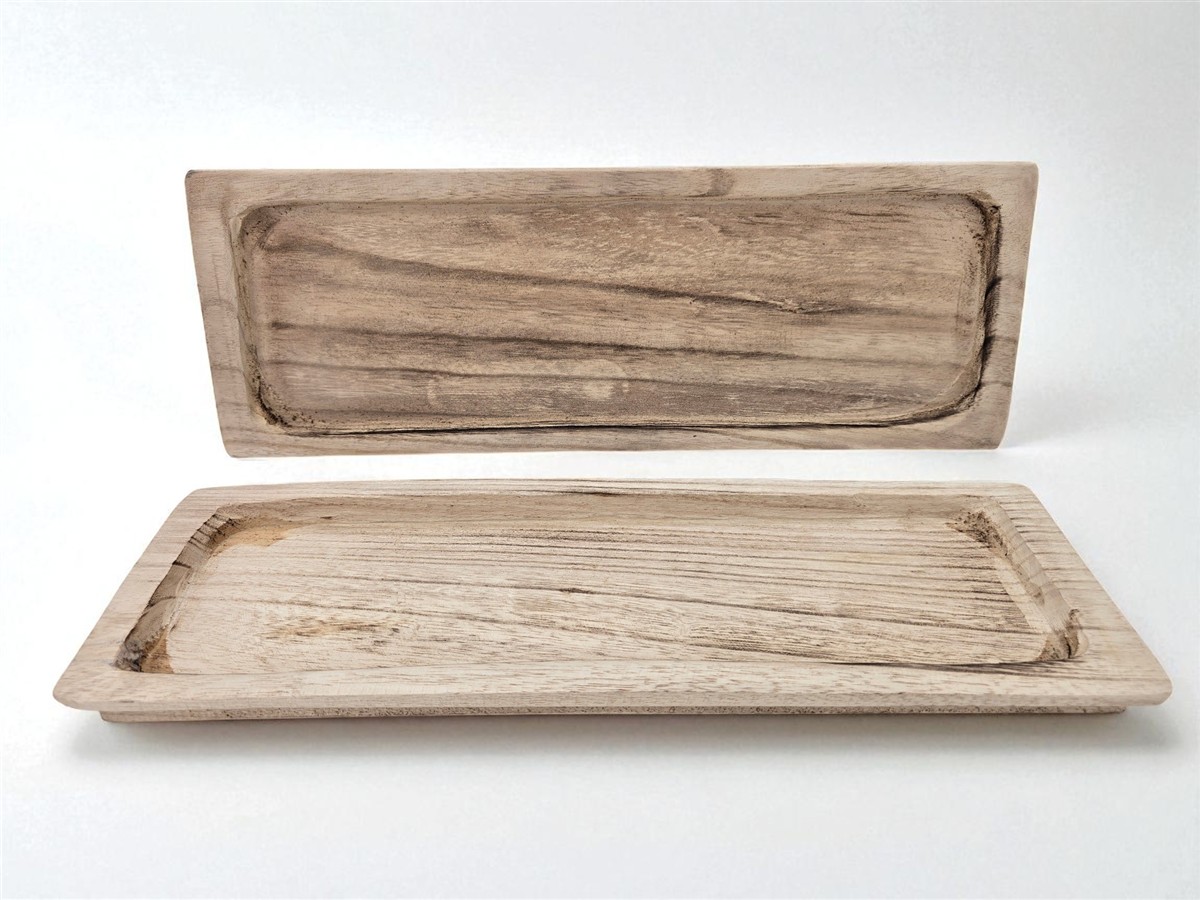 מגש מלבני עם ידיות חבל עץ מגולף 8*17*51