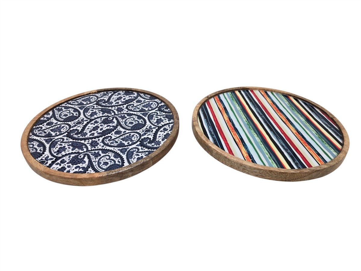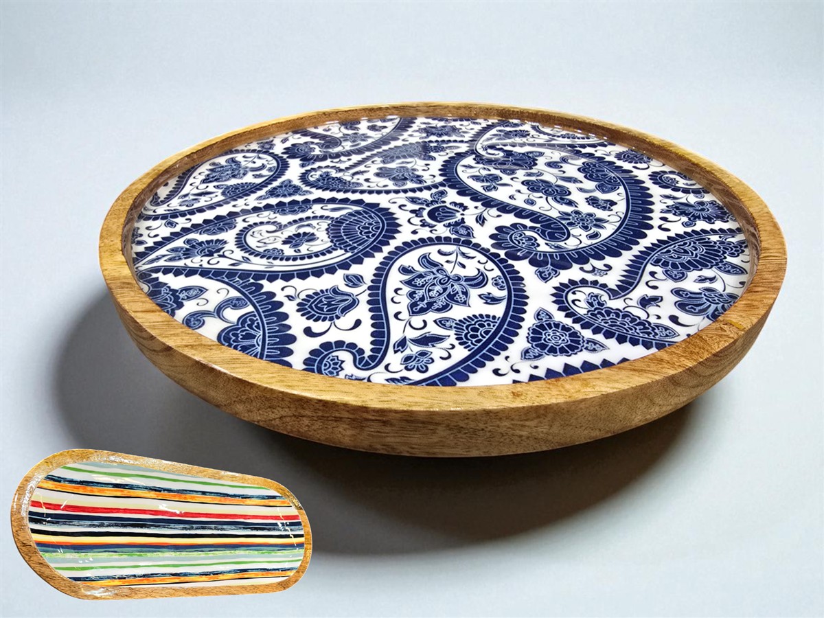 מגש עץ עגול אמייל כחול 7*30