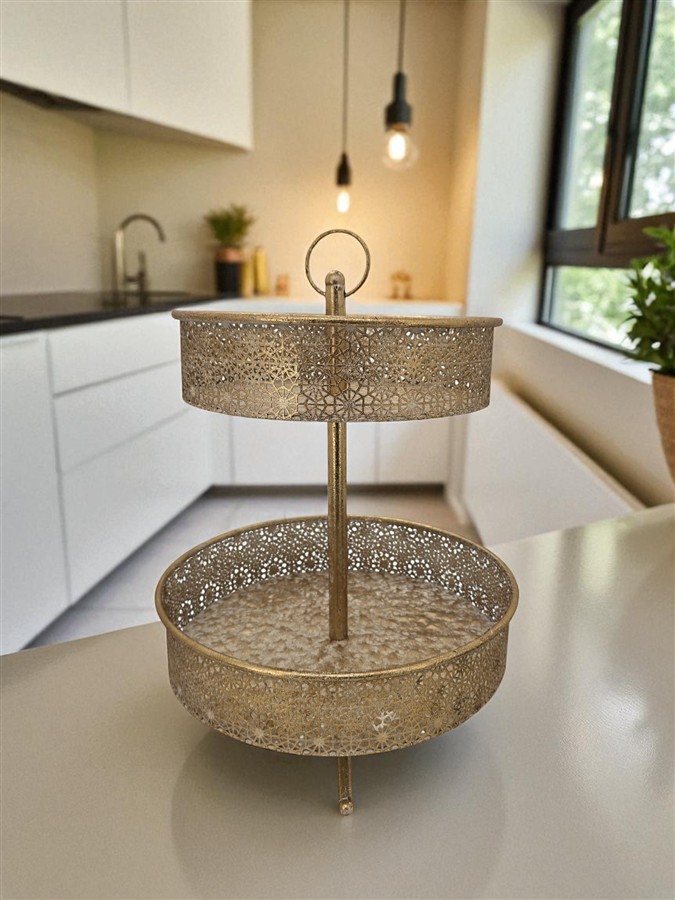 / מעמד 2 קומות עגול מתכת זהב 48*39