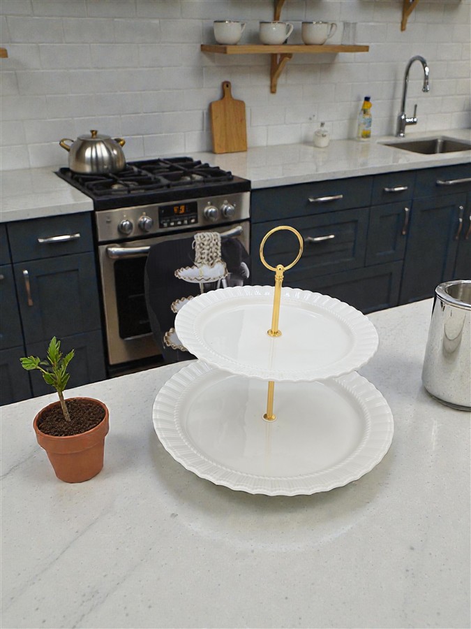 מעמד 2 קומות עגול פורצלן לבן 24*26