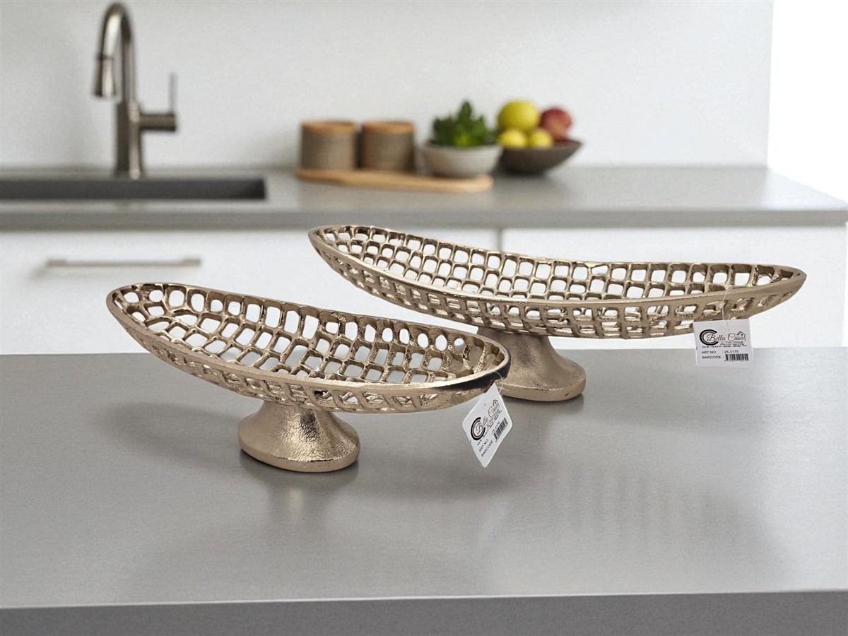 סט *2 מגש אובלי עם רגל יציקת אלומיניום 13*17*44