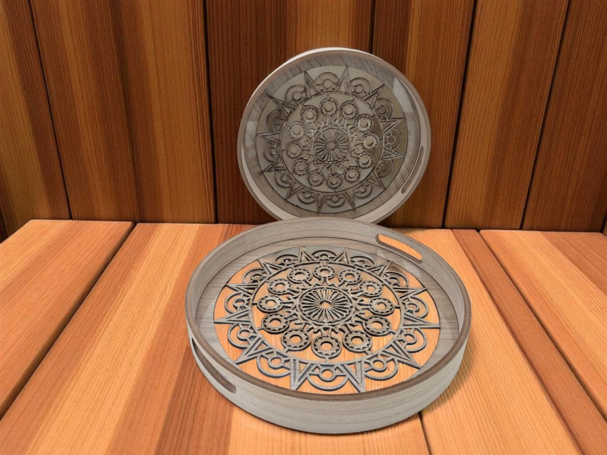 סט *2 מגש עם חריטה עגול 4.5*35