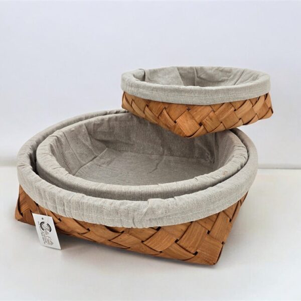 סט *3 סלסלת עץ מרופדת עגול 8.5*36