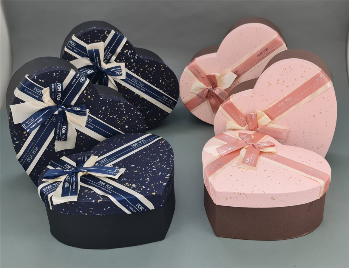 סט *3 קופסאות "לב" 13*27*31 חום/ורוד