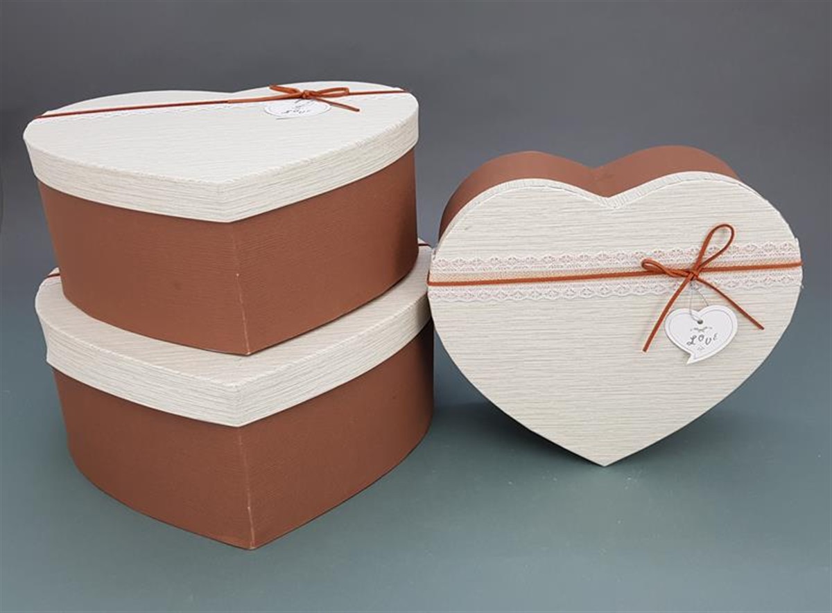 סט *3 קופסאות קרטון לב בג'