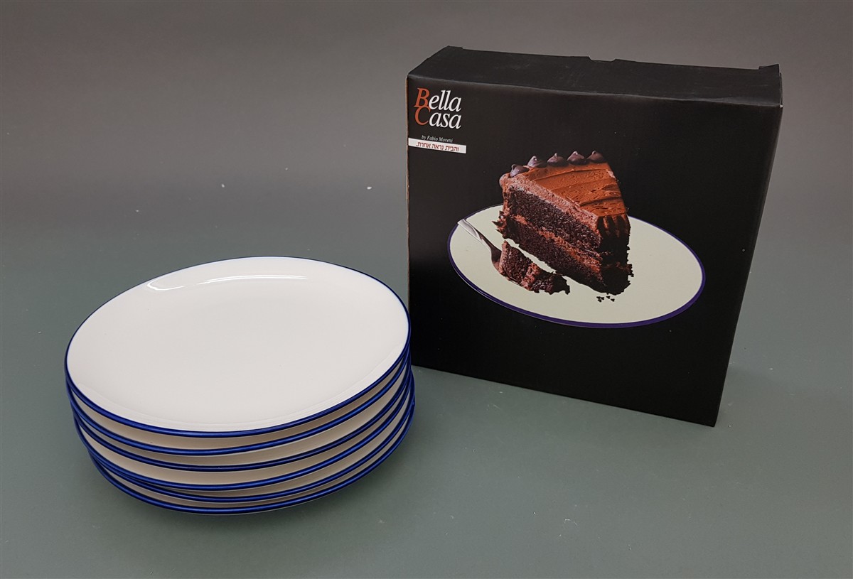 / סט *6 צלחות עוגה פס כחול 18סמ.