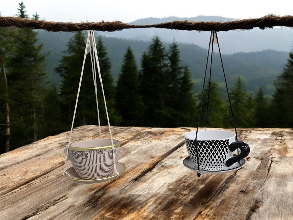 ספל עם צלוחית לעציץ 10*14*19 שחור תליה