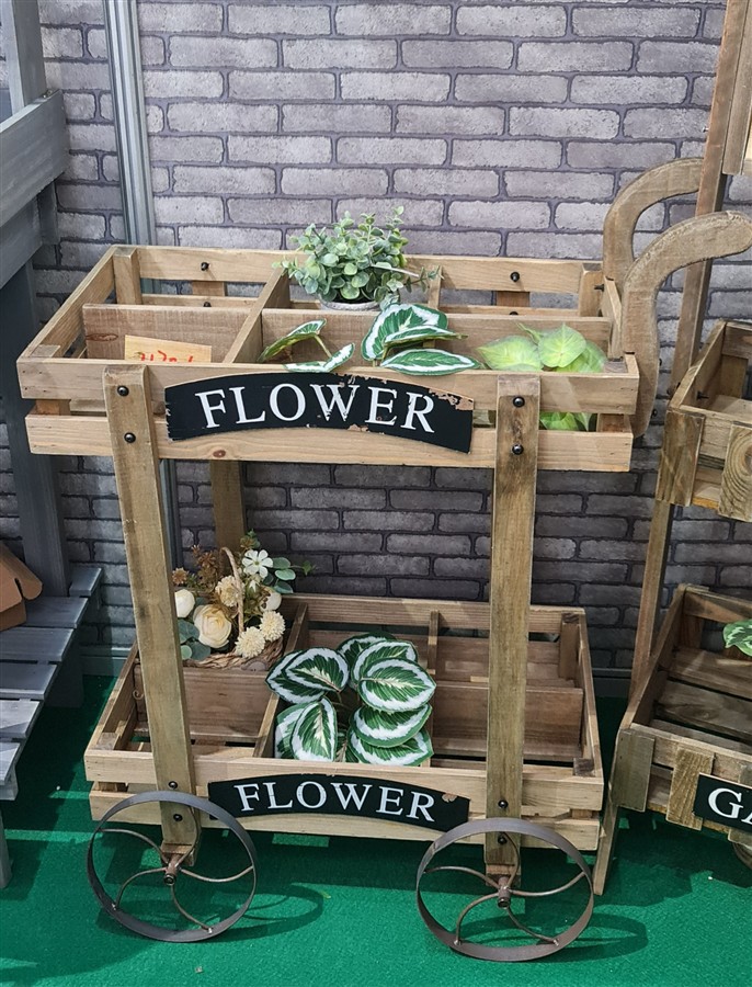 / עגלת עץ כפולה FLOWER 85*40*73