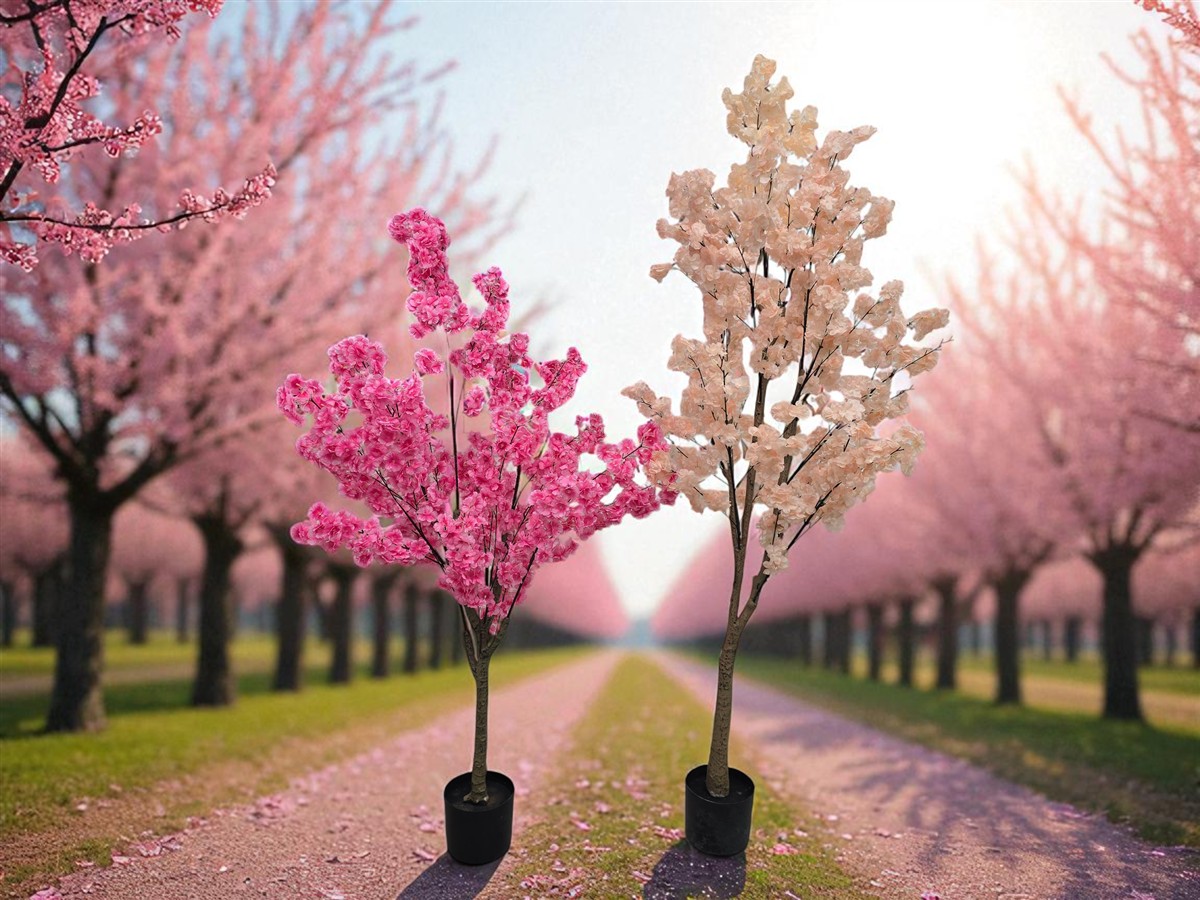 עץ פרחים ורודים 7 ענפים 1.5 מטר