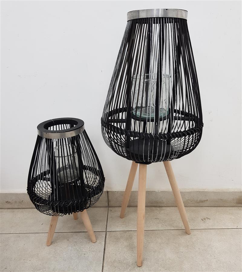 סט *3 בית עציץ עם רגליים פס שחור 22/57*32