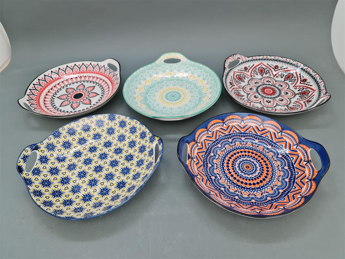 / צלחת עגולה עם ידיות דקור 6*25*28