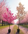 עץ פרחים ורודים 7 ענפים 1.5 מטר