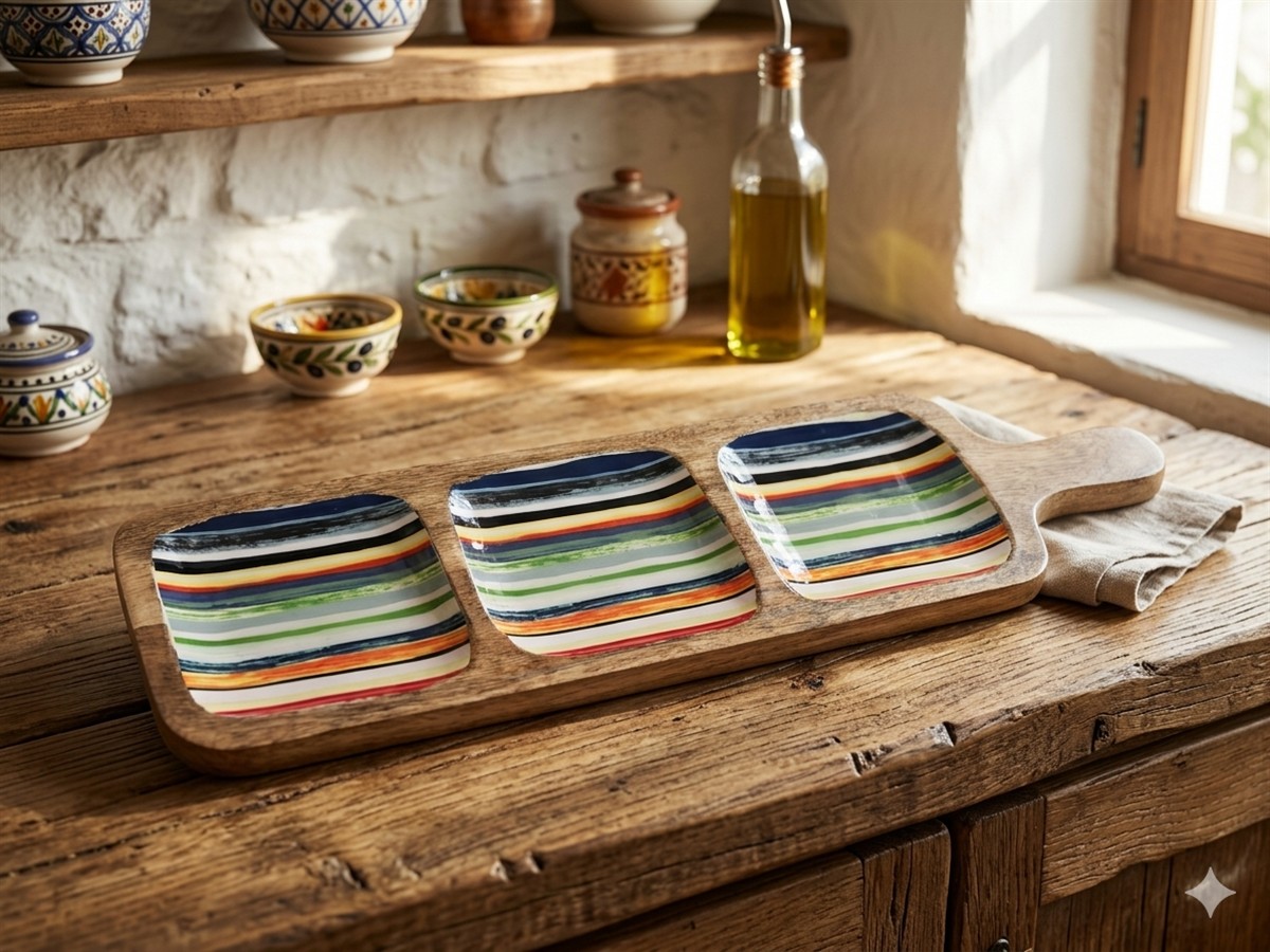 מגש עץ אמייל פסים 18*41