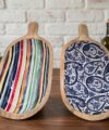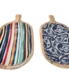 קערת עץ עם כפות אמייל פסים
