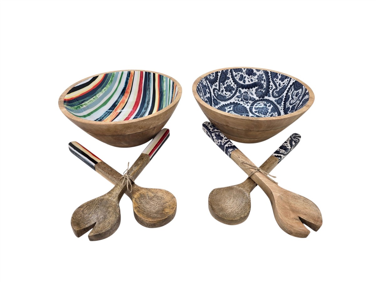 / קערת עץ עם כפות אמייל פסים